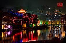 | 晚上 | 可自由欣賞美麗的【鳳凰夜景】:沿沱江兩岸漫步,欣賞沙灣吊角樓,細細品味古城久遠的歷史和 塵封心底的記憶;古香古色、極富濃郁苗家民族風韻的吊腳樓坐落于兩岸,細腳伶仃的木柱立于河中,拖起古城中一段美麗的往事。在這里您可以欣賞到鳳凰古城全貌探訪古城風情尋覓古樸醉美湘西發(fā)現苗家銀匠之代代相傳的銀飾制作技。 |