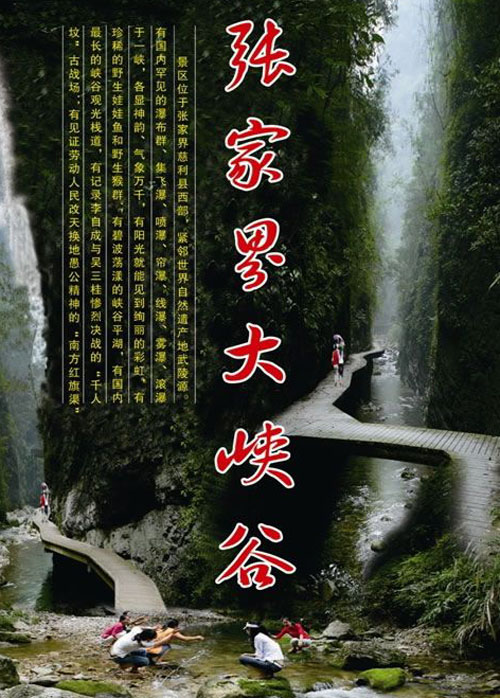 早7-8點(diǎn)左右市區(qū)定點(diǎn)集合點(diǎn)集合,游覽【張家界大峽谷】峽谷間是一條清幽的小溪,沿溪邊是用木板搭建的游道, 張家界大峽谷峽谷內(nèi)不僅有傳統(tǒng)的秀美自然風(fēng)光,還云集有三朝數(shù)代的歷史人文景觀,如記錄李自成與吳三桂慘烈決戰(zhàn)的“千人墳”古戰(zhàn)場(chǎng),反映湘西歷史特色的土匪洞及見證解放初期湘西人民靠天勞作在絕壁間挖鑿的“南方紅旗渠”等。 |